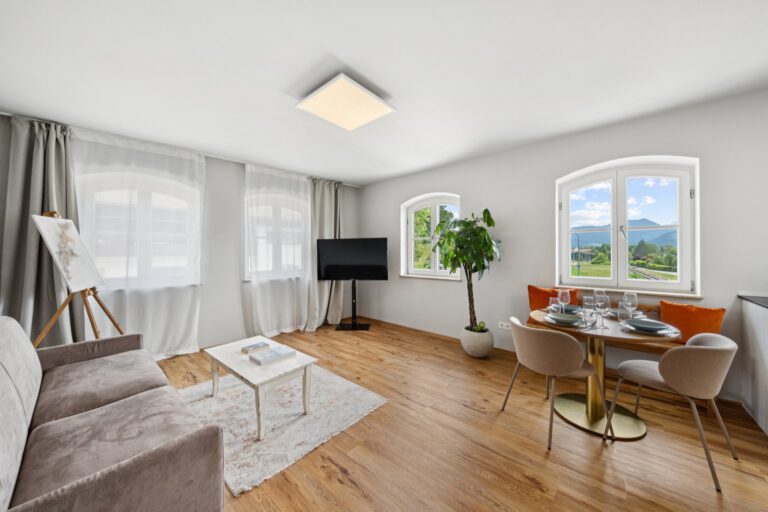 In Miesbach haben wir die Einheiten umfassend umgestaltet und ein durchgängiges Designkonzept umgesetzt, das perfekt auf die Region abgestimmt ist. Einrichtung und Dekoration wurden sorgfältig ausgewählt, um sowohl den regionalen Charakter zu unterstreichen als auch den Bedürfnissen unserer Zielgäste – vor allem Touristen – gerecht zu werden. Zusätzlich haben wir die Abläufe strukturiert und optimiert, sodass Reinigungskräfte effizient arbeiten konnten und ein reibungsloser Ablauf garantiert war. Das Ergebnis sind Wohnungen, die den Gästen ein rundum besonderes und komfortables Erlebnis bieten.